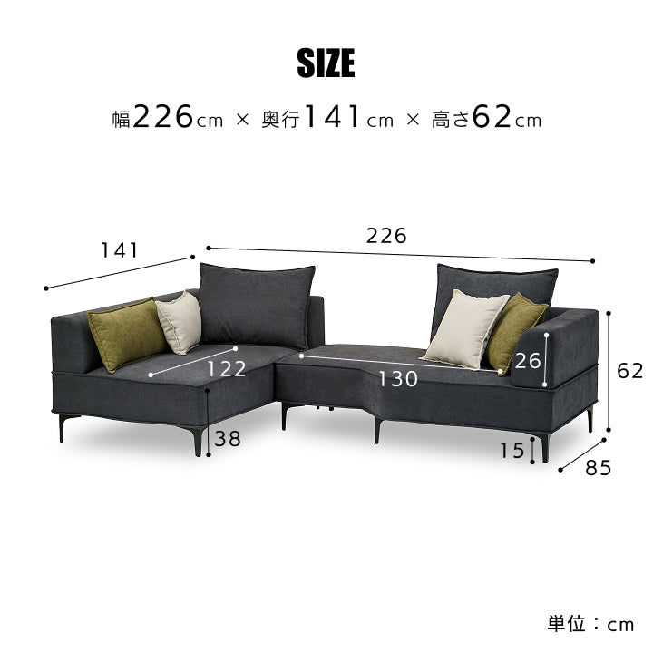 サイズ W(幅) 226cm × D(奥行) 141cm × H(高さ) 62cm