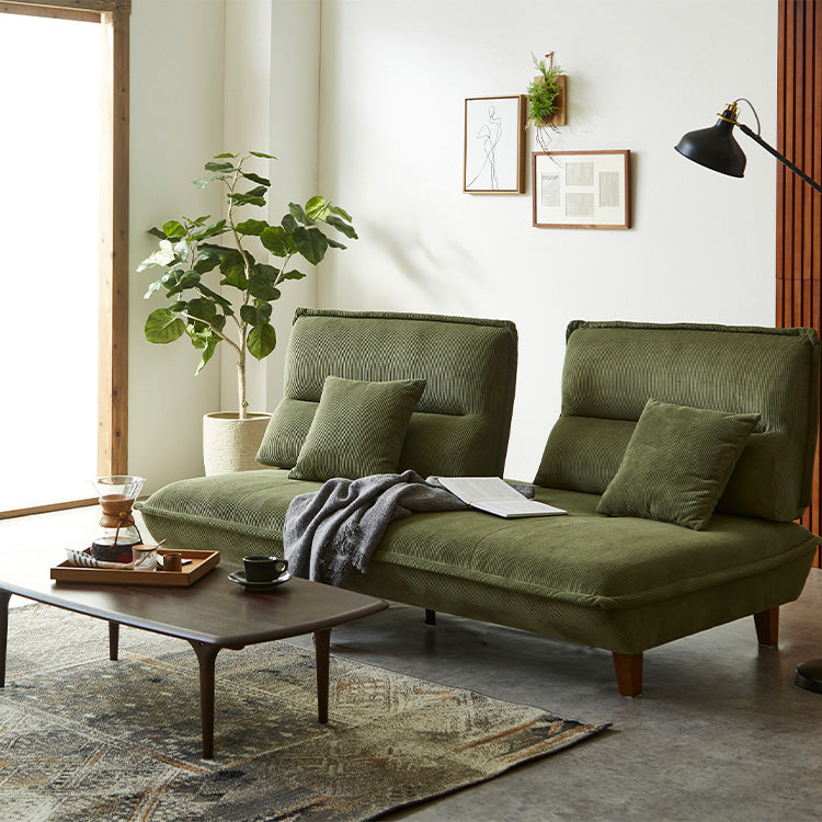 奥行きが変えられる3Pソファ(GREEN・片側だけ背もたれが前の状態)