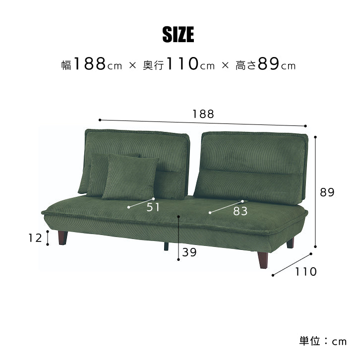 サイズ W(幅) 188cm × D(奥行)110cm × H(高さ) 89cm