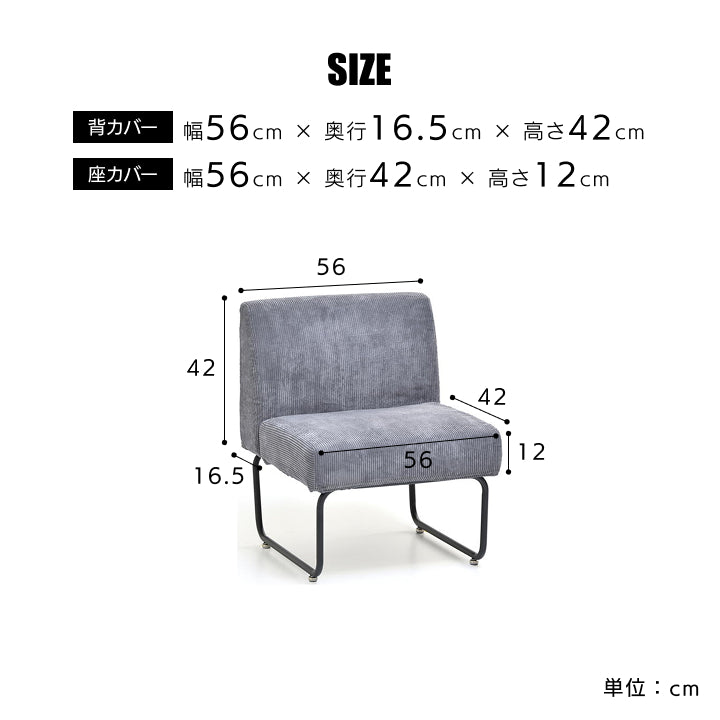 | サイズ | [背カバー] W(幅) 56cm × D(奥行) 16.5cm × H(高さ) 42cm [座カバー] W(幅) 56cm × D(奥行) 42cm × H(高さ) 12cm |