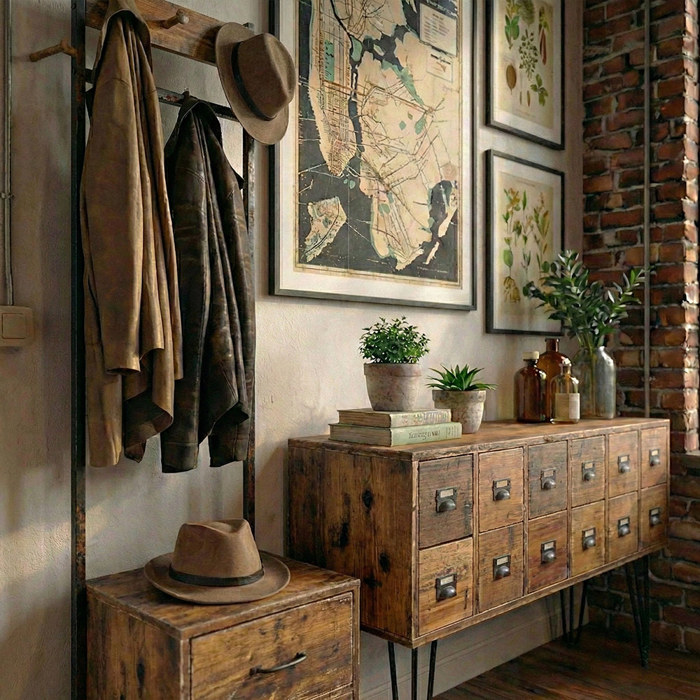 無骨なアイアン×味わい深いウッドの組み合わせが、部屋の"男前度"を上げてくれる