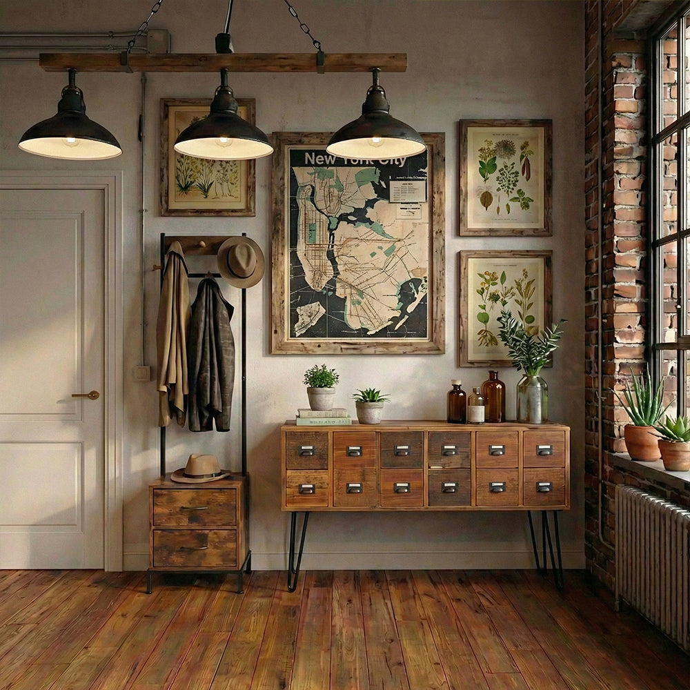 3連のペンダントライトが更なるヴィンテージ感を演出します