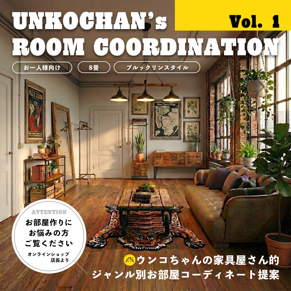 8畳でも、本気のブルックリンスタイルで、自分だけのカッコいい空間が作れます。