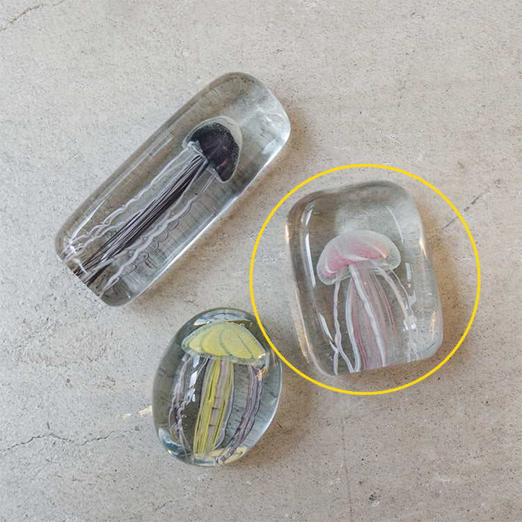 | 備考 | ※ハンドメイドの為、色やサイズ、気泡の入り方、クラゲの形状には個体差がございますので予めご了承ください。 ※表面上の細かなキズやガラス内に白い点状のものが見られることがありますが製品の製造工程にてやむを得ないものであり、不良品ではございません。 ※窓辺等直射日光が当たる場所に置くと光を集め火災の原因となる可能性があるためお止めください。 ※直接、太陽にかざして見ると失明する恐れがありますので、お止めください。 ※本製品はおもちゃではありません。小さなお子様だけでのご使用はお止めください。 |