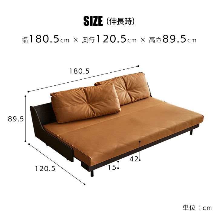 | サイズ | 通常時:W(幅) 180.5cm × D(奥行) 93cm × H(高さ) 89.5cm SH(座面高) 42cm 伸長時:W(幅) 180.5cm × D(奥行) 120.5cm × H(高さ) 89.5cm SH(座面高) 42cm |