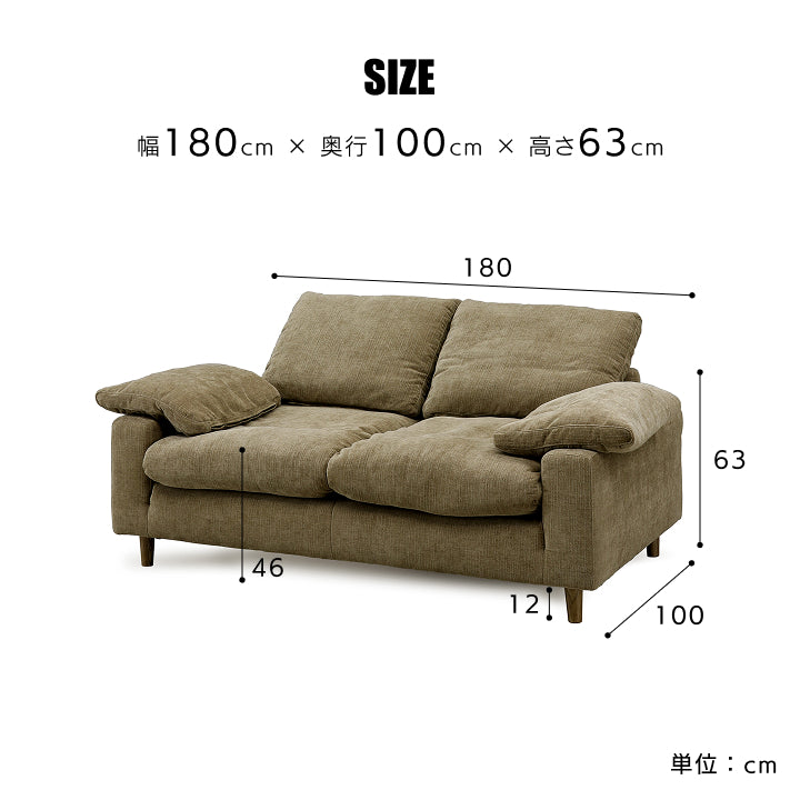 | サイズ | W(幅) 180cm × D(奥行) 100cm × H(高さ) 63cm SH(座面高) 46cm |