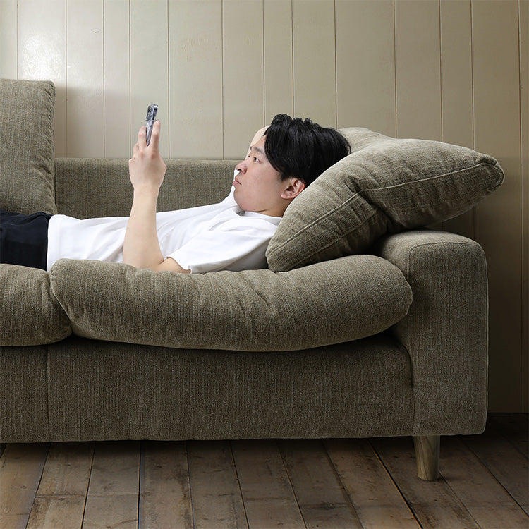 | 素材 | 張地:ファブリック クッション:フェザー混合 脚部:天然木 |