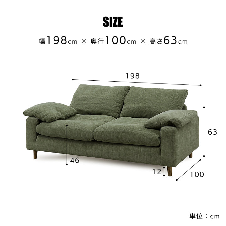 | サイズ | W(幅) 198cm × D(奥行) 100cm × H(高さ) 63cm SH(座面高) 46cm |